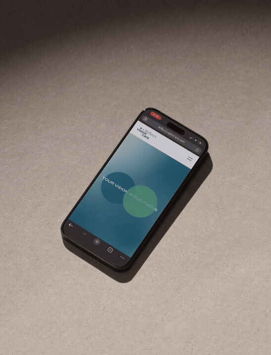The brand strategy was very intentional to avoid (almost) all eye tropes and imagery within the identity itself and supporting visual language. In its place, the strongest geometric form – the circle – helped to not only “dot the i’s” in the word “vision” but also became the graphic representation of eyes. Whether perceived or not, the dot-eyes present the viewer with a clear and bold identity alongside “Reflect” and above “vision.” When motion graphics are introduced, these dot-eyes come to life as playful symbols of their duality as typography and eyes.